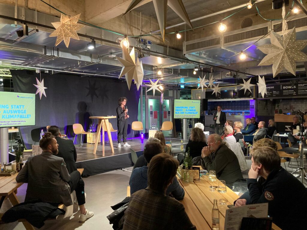 Am 23.11.2021 fand im CO/RE Oldenburg das erste Quartiers-Labor statt: Zwei Impulsvorträge von Moritz Marx (agradBlue) und Prof. Anja Willmann (Jade Hochschule) beleuchteten die vielfältigen Möglichkeiten von CO2-Einsparungen durch Sanierung und die Nutzung erneuerbarer Energien in Bestandsarealen. Im Anschluss tauschten die Vortragenden sich mit Alexis Angelis (Angelis & Partner), Thorsten Böke (Linden Projekt) und Björn Motzkus (PORR AG) sowie 50 Gästen vor Ort und bis zu 75 Interessierten im Live-Stream zum Thema „Sanierung statt Abriss – Auswege aus der Klimafalle?“ aus. Ein spannender und gelungener Auftakt unserer neuen Veranstaltungsreihe.