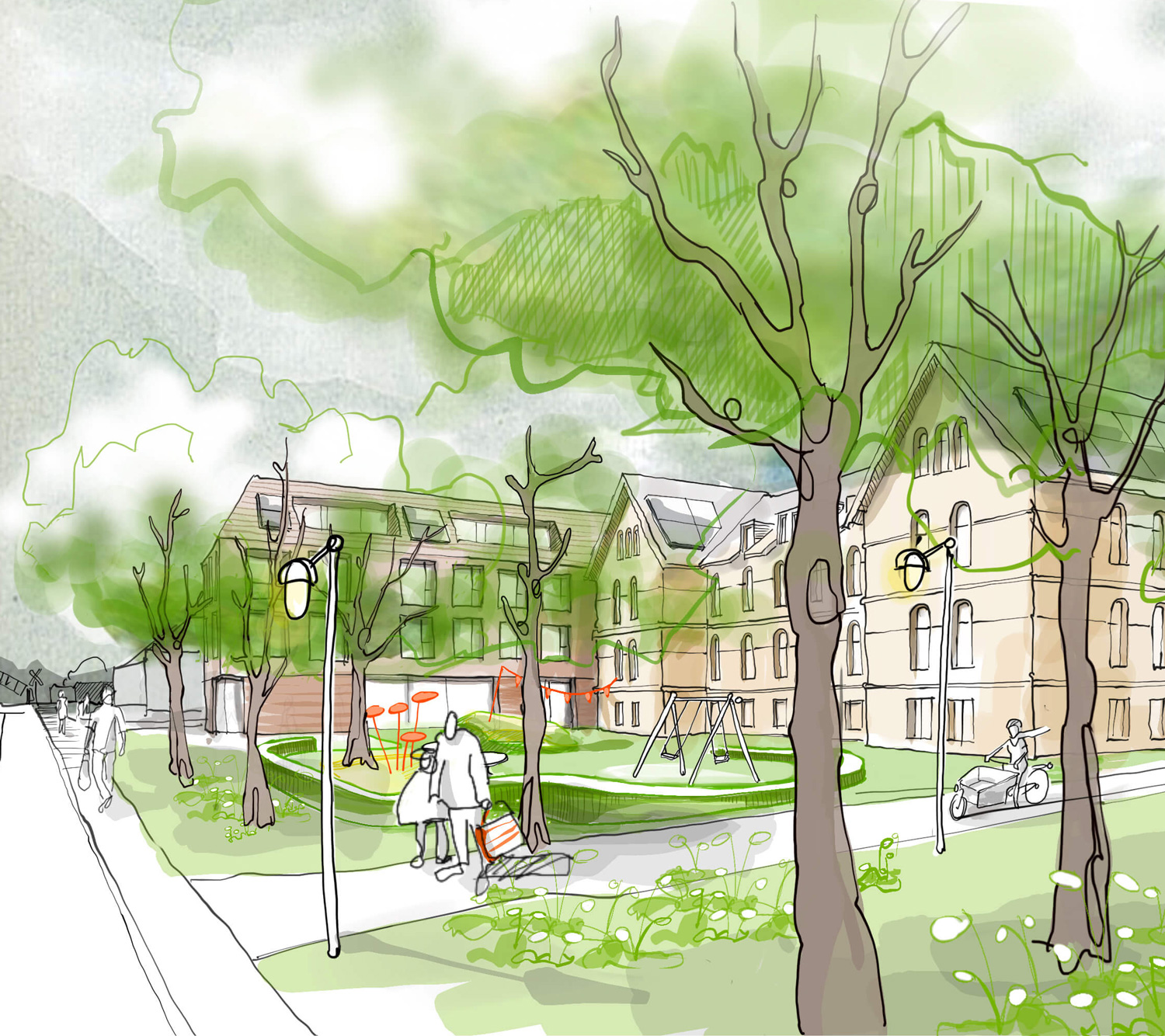 Nach einem intensiven Dialogprozess und einer detaillierten Studie zur Ökobilanz des Armenhauses durch externe Expert*innen haben wir uns für dessen Erhalt entschieden – und die Pläne für das Lebensquartier Haarentor erneut überarbeitet.